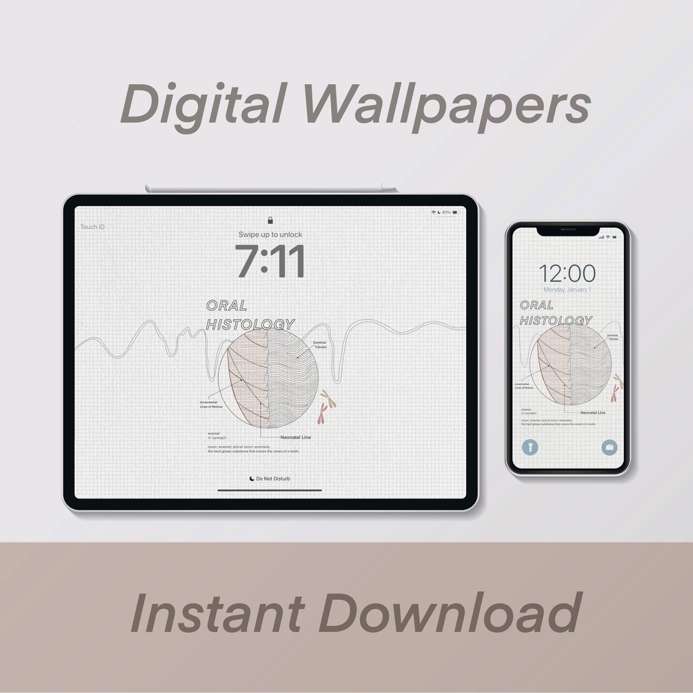 My unique and modern take on vintage and retro style of medicine inspired designs are perfect for your devices. This custom-designed wallpaper features a illustration of ground section histology of tooth showcasing enamel rods and dentinal tubules and it is perfect for premed or pre dental students, medical or dental students, doctors & dentists, dental hygienists/ assistants, technicians, nurses or anyone with an interest in Oral Histology , dentistry or teeth and medicine, and especially if you are seeking inspiration during your med school or dental school journey. My wallpapers will provide you a constant source of motivation each time you glance at your phone or tablet, plus it will add to the aesthetic charm of your devices.